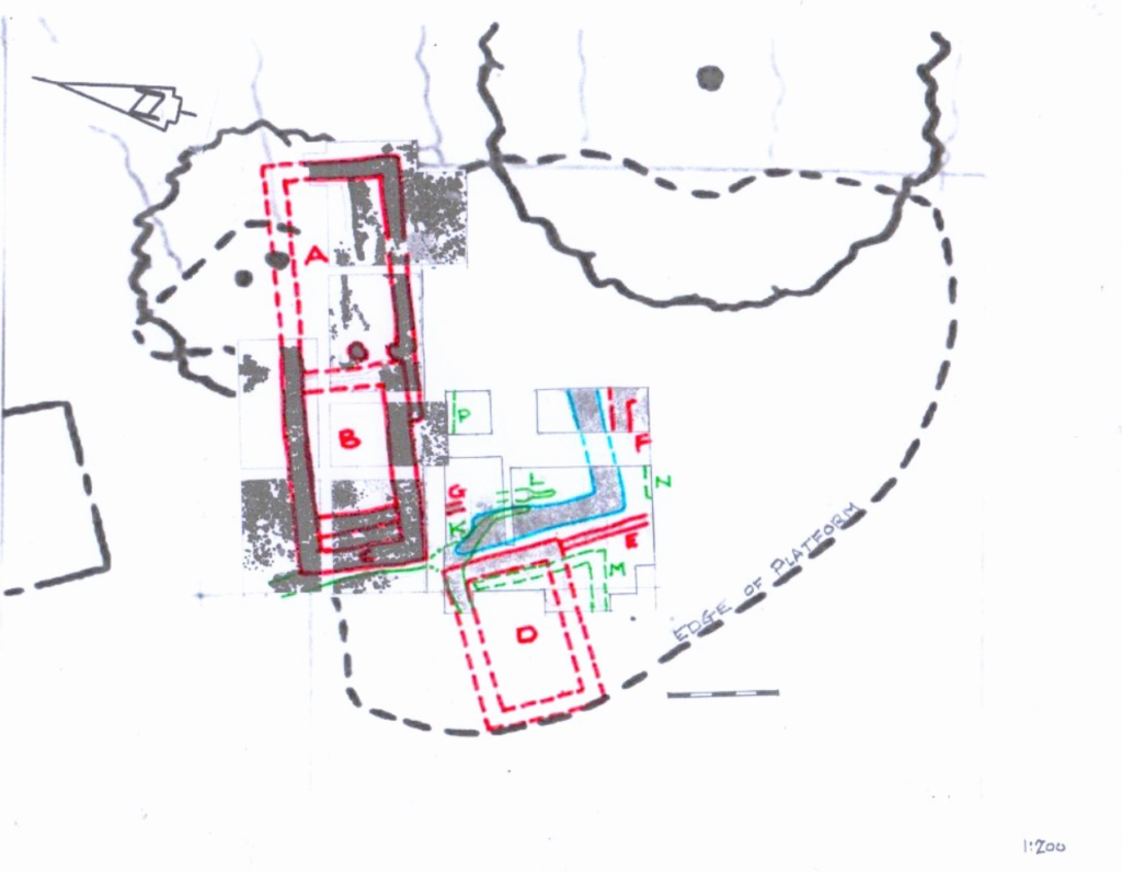 The attached plan is a composite of the ’21 and ’22 excavations and this year’s excavations on top of the topographical survey showing the extent of the platform.
